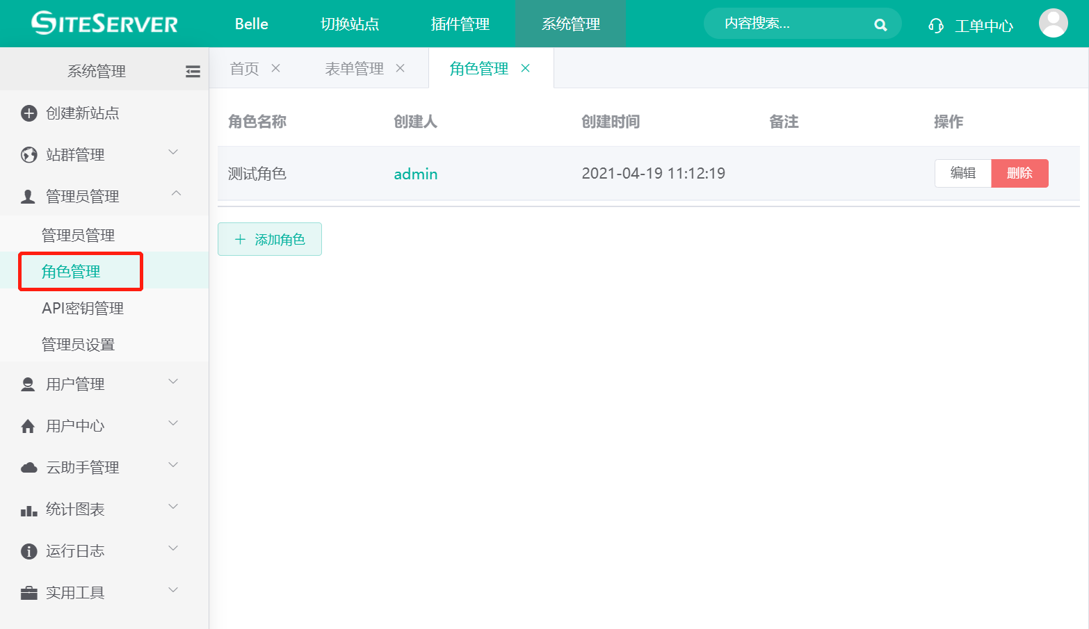 首先我们需要编辑或新增角色,为角色添加表单权限。