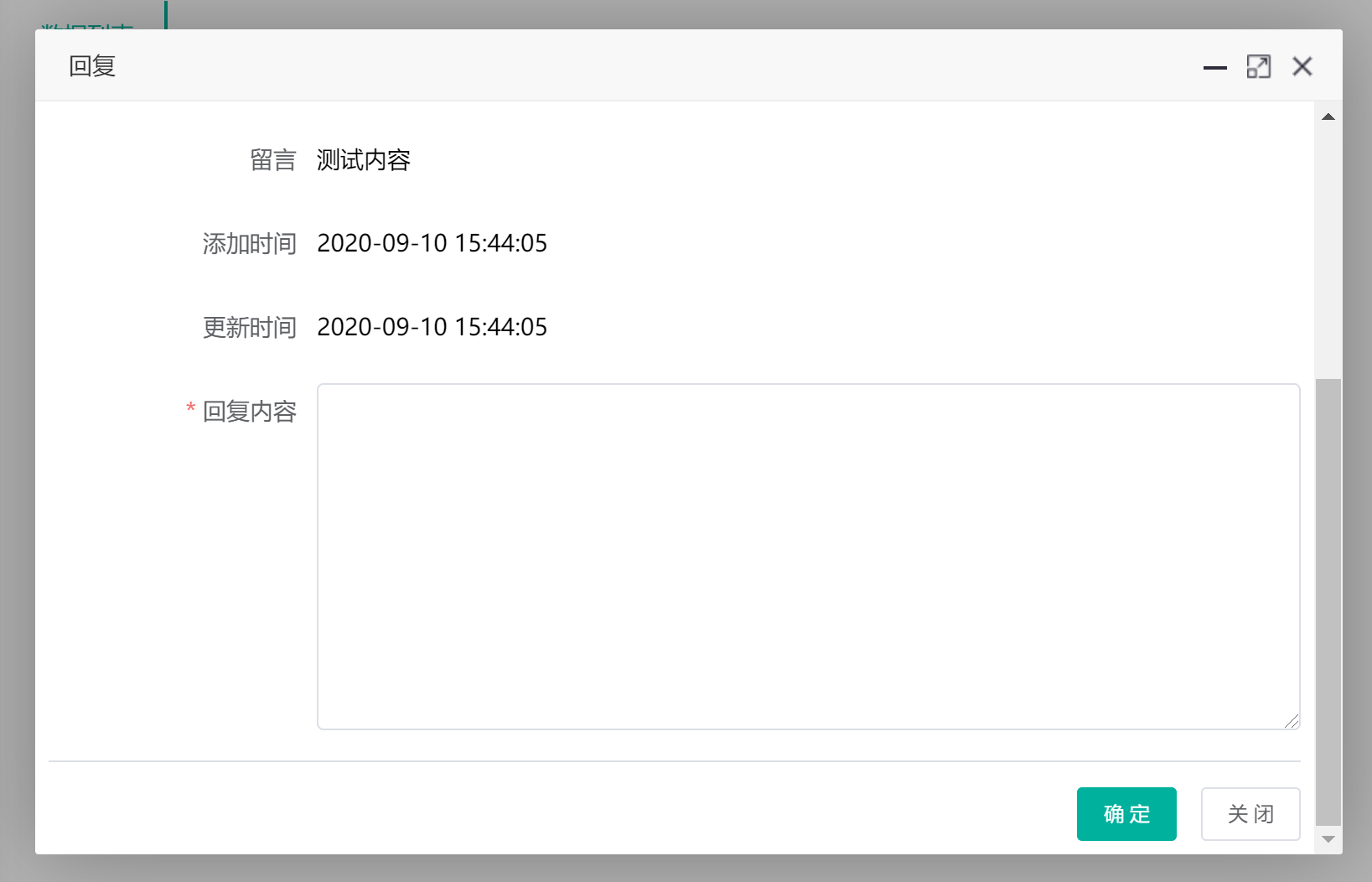 点击表单数据右侧的 回复 链接,系统将弹出回复界面: